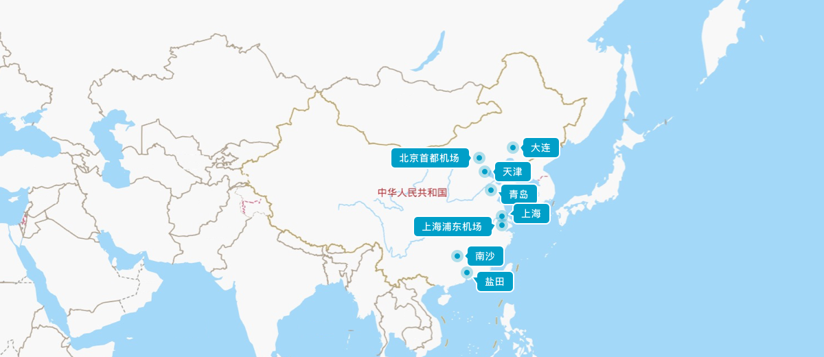 主營口岸為:天津、上海、大連、青島、鹽田、南沙等海港,北京首都機場及上海浦東機場兩個空港。